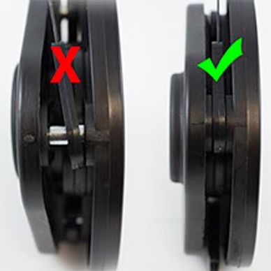 Close the head making sure the pins are completely inside the holes on the bottom half. The blades should pivot but you shouldn't see the pins. Re-do the safety screws and lock nuts and re-install the GrassGator head on your trimmer.