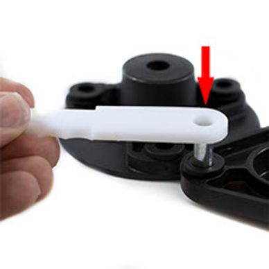 With the shaft now locked, keep turning the GrassGator head to unscrew it. It will work as a wrench on the recessed nut or bolt. If it's been on the trimmer for a while and is hard to remove, spray some lubricant or solvent right where the recessed fastener is and let it soak for 30 minutes. That should help loosen the nut or bolt. Be careful not to force it or you'll end up rounding up the hex-shaped recessed hole which will ruin the GrassGator head.