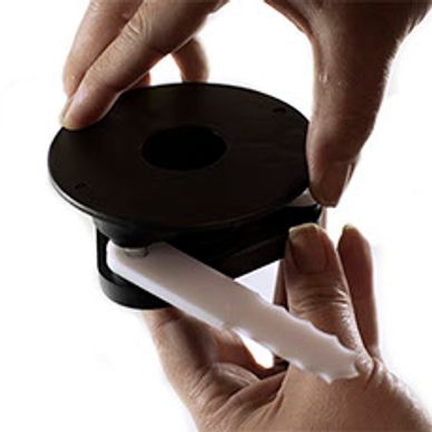 Press the halves together to close the head. Make sure all three pins are completely inside the holes. Screw the GrassGator head back into the shaft.